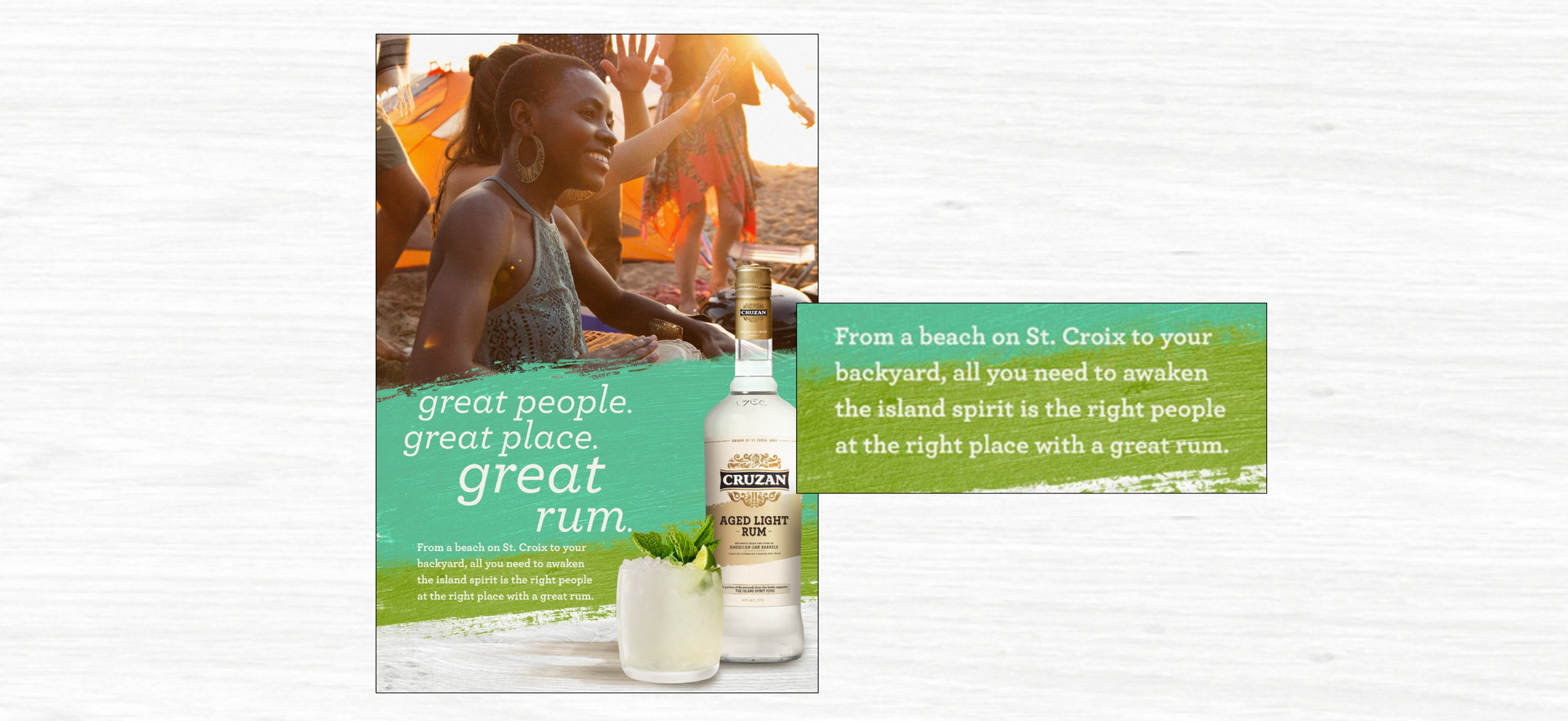 Similar to the DeKuyper project, this was a repositioning for Cruzan Rum. One of my mom’s best friends—basically an aunt to me—is from St. Croix, and she connected me with her brother, who still lives on the island. We ended up talking for two hours. I wanted to go beyond the surface, to really understand island life and what Cruzan Rum means to the people who call it home.